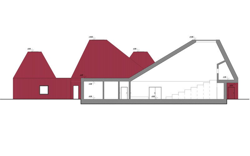 W ich skład wchodzą: sala koncertowa, sala zajęć ruchowych i tańca, sale warsztatowe i kameralna sala kinowa. Poszczególne pomieszczenia zostały zlokalizowane tak aby ich ekspozycja sprzyjała pełnionej przez nie roli. Sale doświetlają duże przeszklenia otwierające się na ogród oraz świetliki zlokalizowane w szczytach dachów.